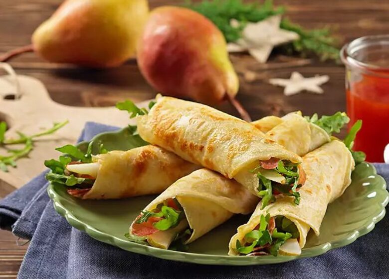 Palačinke s kruškom, rukolom i šunkom